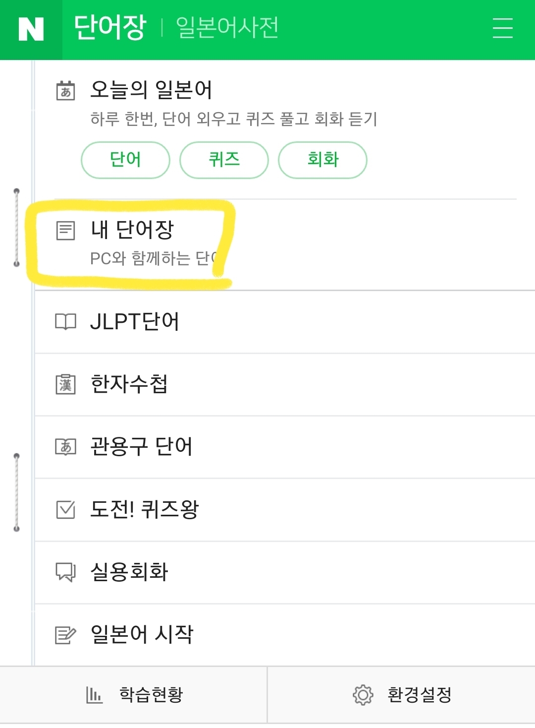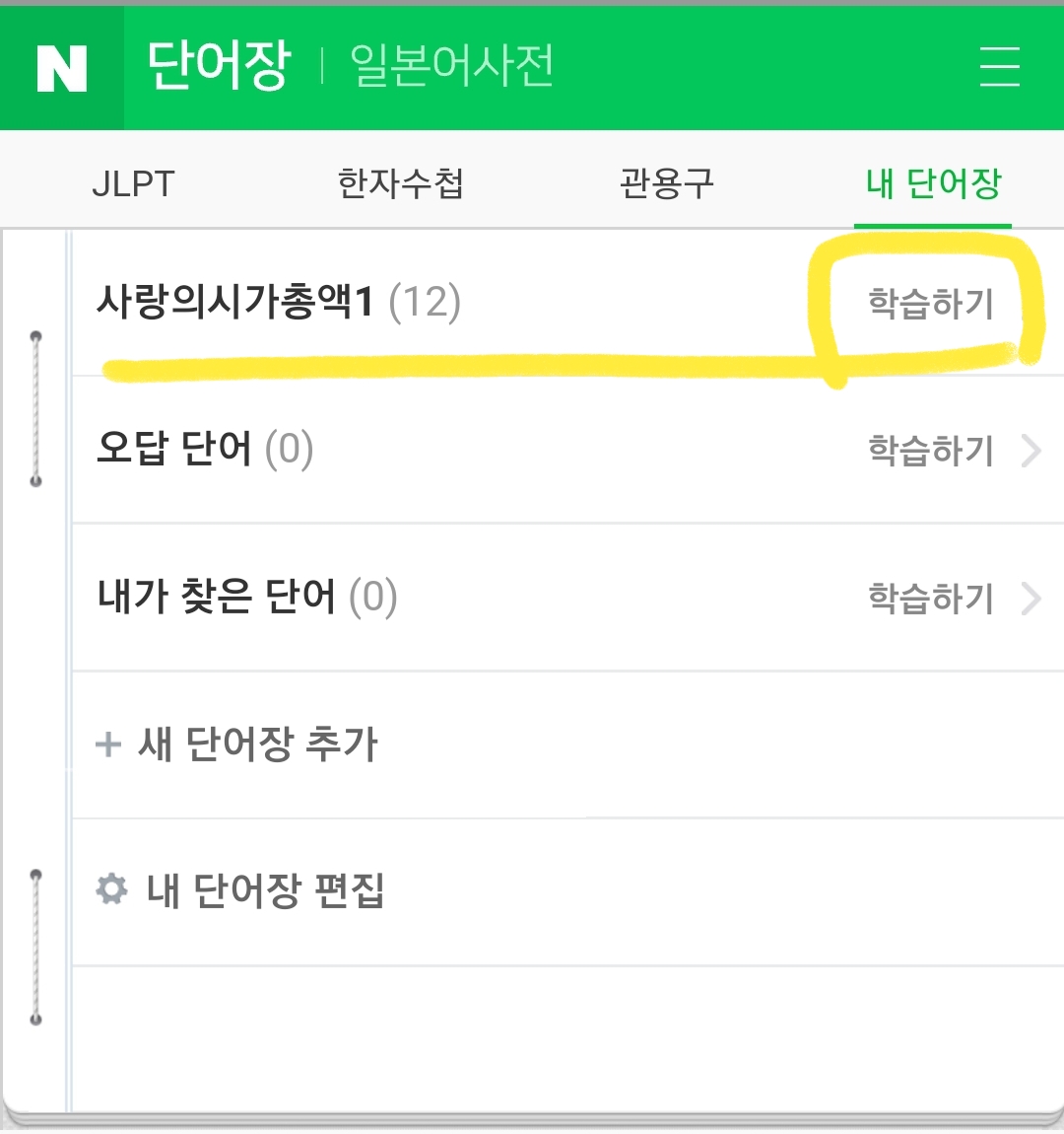 그런데, 그간 네이버 사전에 있는 단어장을 활용하지 않았었다.