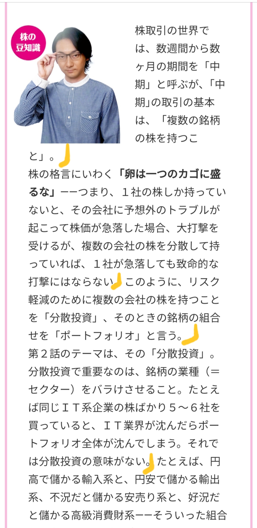 1) 주식거래의 세계에서는 몇주간에서 몇개월의 기간을 "중기"라고 부르는데, "중기"의 거래 기본은 "복수(여러개)'의 종목의 주식을 갖는 것.